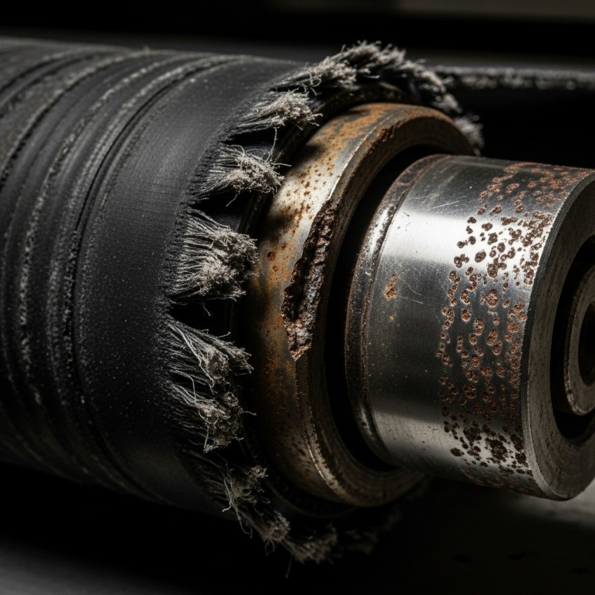 - The Diagnostic: Shell Thinning or Flat Spots. Worn rollers create a “hammer effect” that destroys the belt’s bottom cover.